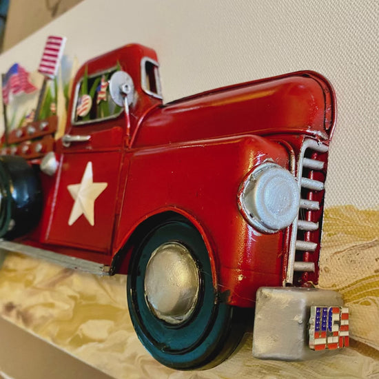 Step back in time with Red, Wheels, and Freedom! This charming vintage red truck celebrates the spirit of America, hand-painted with love and precision. Every detail reflects Franca’s passion for craftsmanship and pride, making it a perfect piece for your home or collection.
