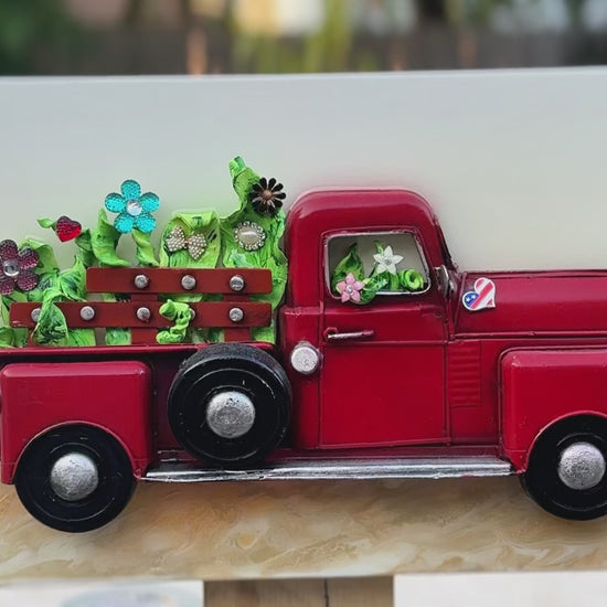 Step back in time with Americana Haul: Vintage Red Truck! This charming piece features a precious vintage red truck, complete with handmade clay décor in the bed and cab. Every detail is crafted with care, celebrating the warmth, nostalgia, and joy of classic Americana days. Perfect for your home, office, or collection, it’s a playful reminder of simpler times—and a piece you’ll treasure for years to come.